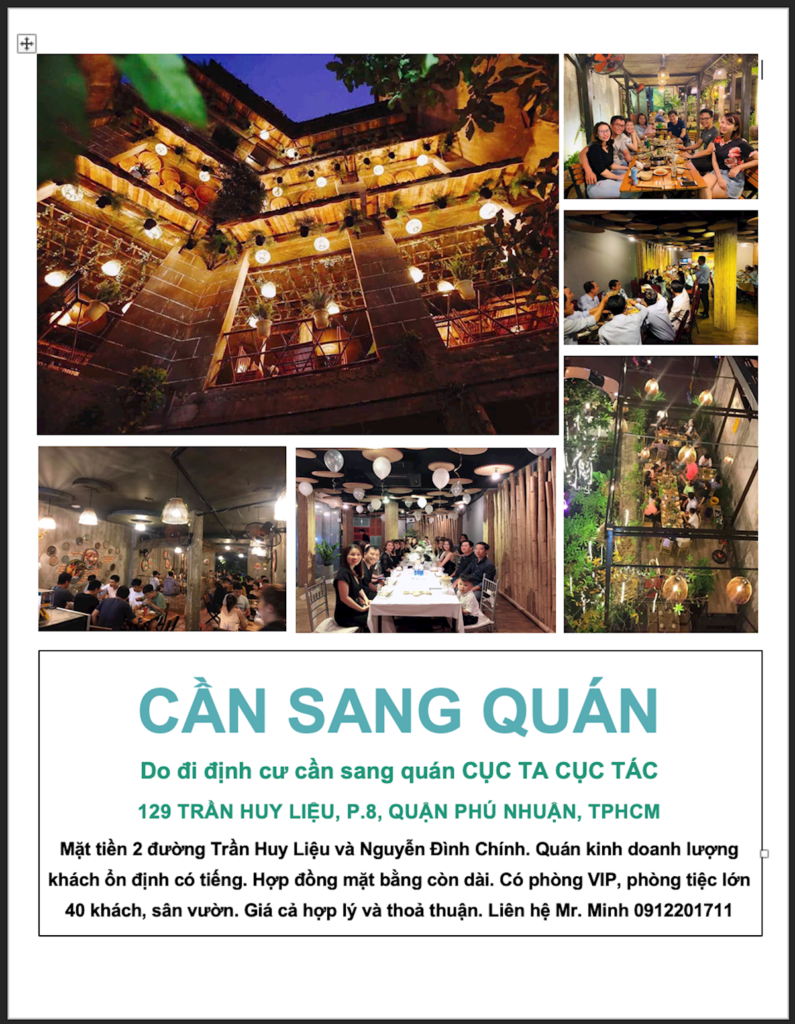 SANG NHANH chỉ cung cấp thông tin sang nhượng từ người đăng tin, sangnhanh.com không chịu bất kỳ trách nhiệm từ thông tin người đăng.